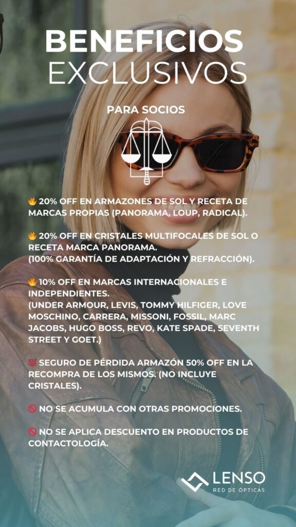 Seguro de pérdida armazón 50% OFF en la recompra de los mismos (No incluye cristales).